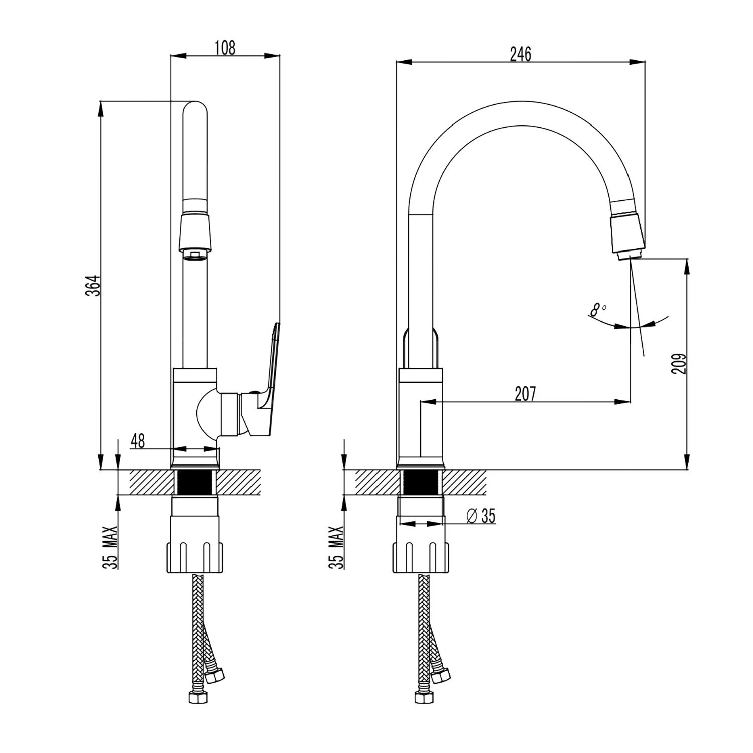 Высота излива, см 20,9 Длина излива, см 20,7
