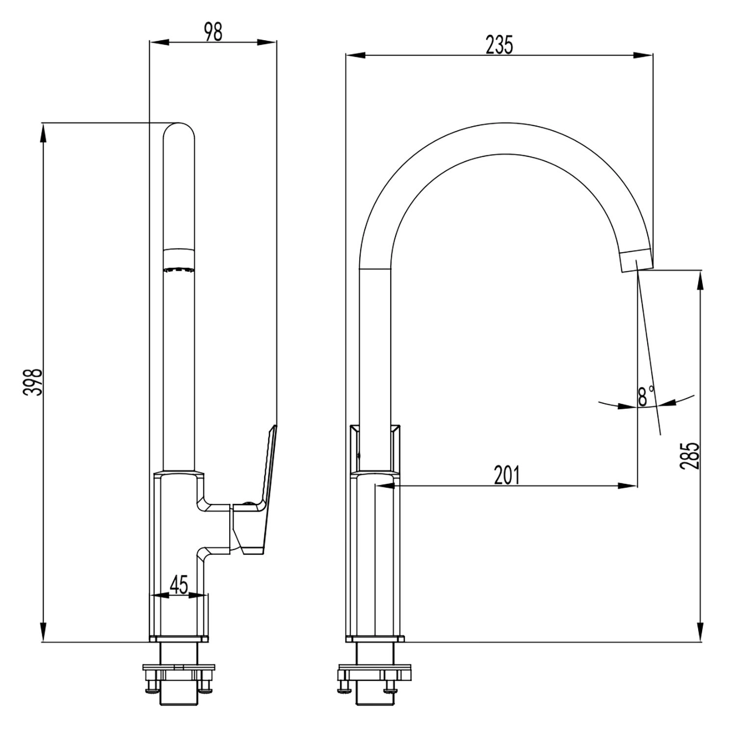 Высота излива, см 28,5 Длина излива, см 20,1