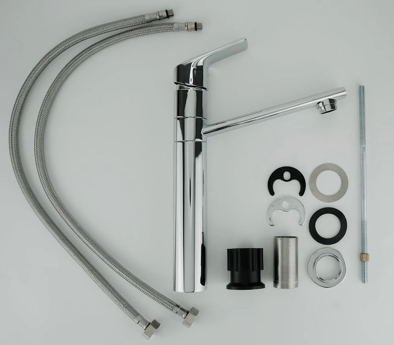 Корпус: латунь кат.A Излив: поворотный, нерж.сталь Картридж: универсальный ESKO,35м Комплектация: крепление FastFix,гибкая подводка 45см.