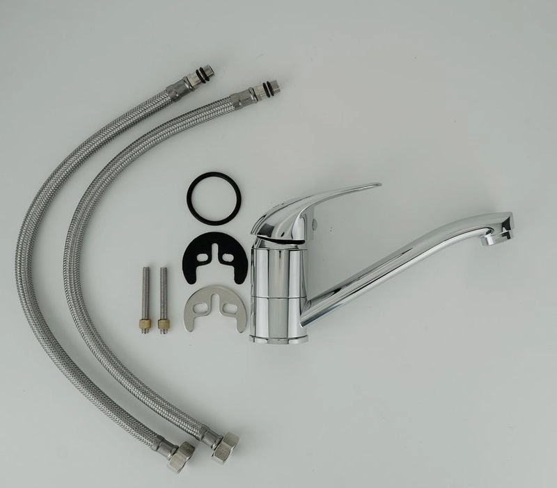 Корпус: латунь кат.A Излив: поворотный Картридж: универсальный ESKO, 35мм Комплектация: пьедесталслит с корпусом, крепление две шпильки, гибкая подводка 40см.