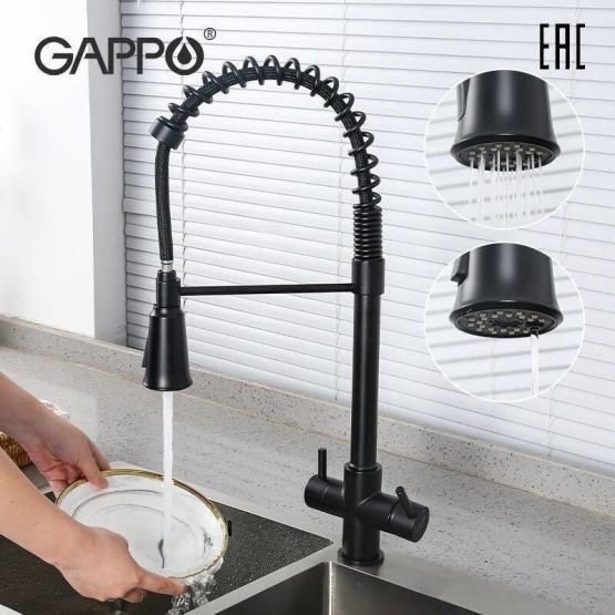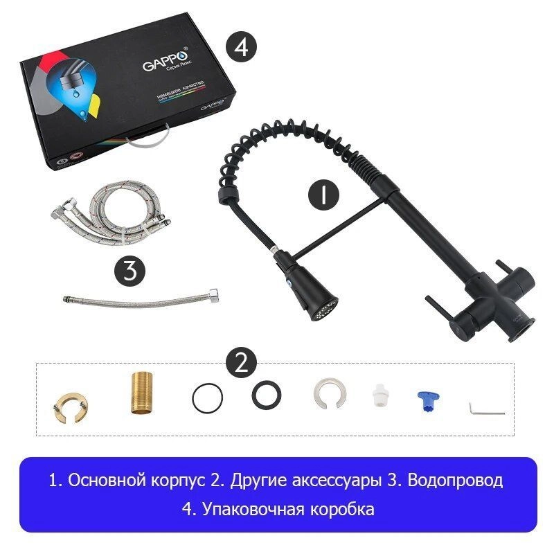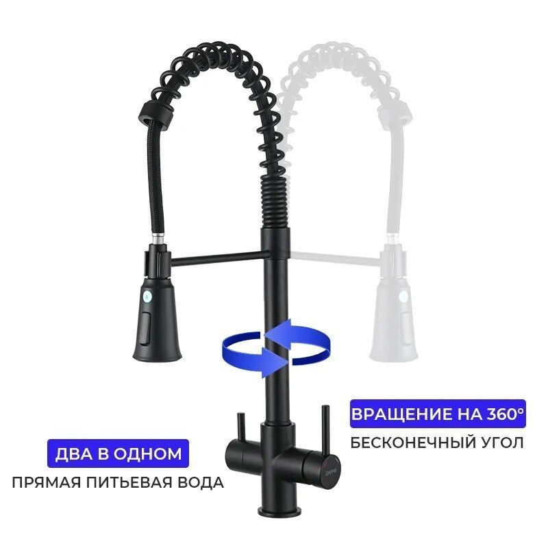 —Смеситель Gappo G4398-66 для кухни с подключением фильтра питьевой воды.чёрный