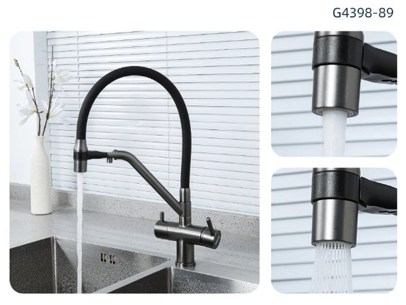 Смеситель Gappo G4398-89 для кухни с краном для фильтра оружейная сталь
