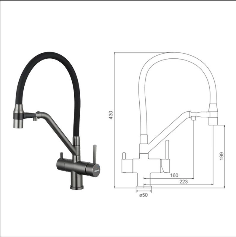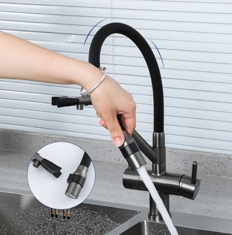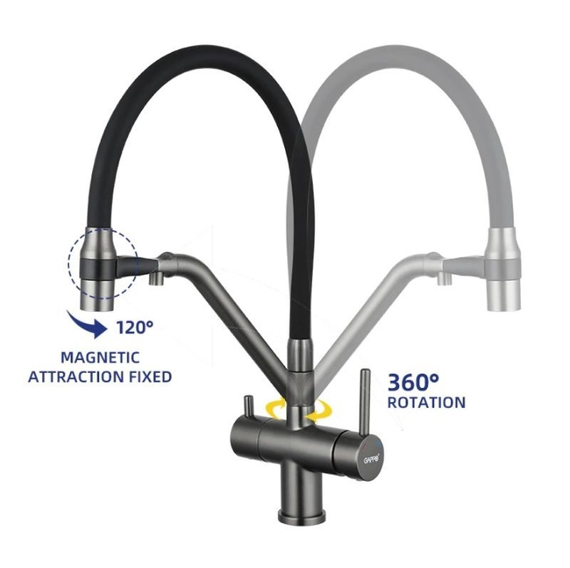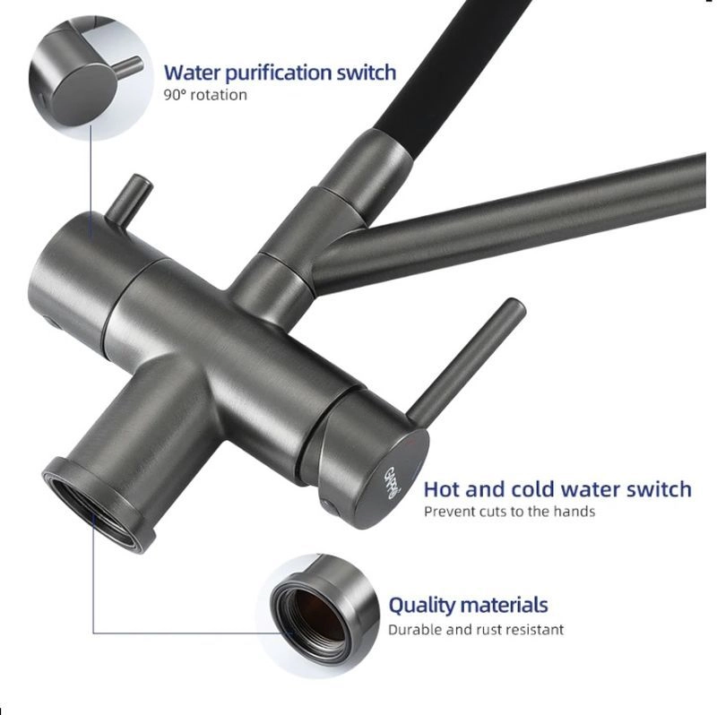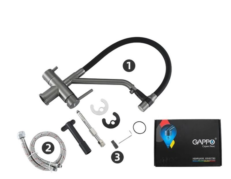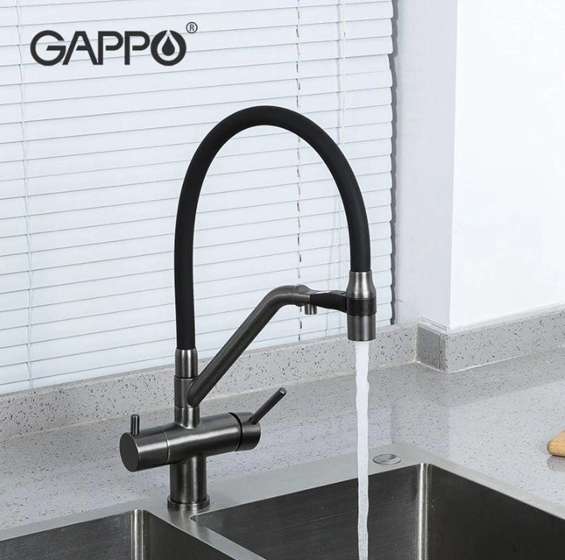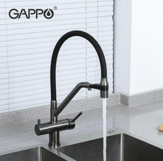 —Смеситель Gappo G4398-89 для кухни с краном для фильтра оружейная сталь