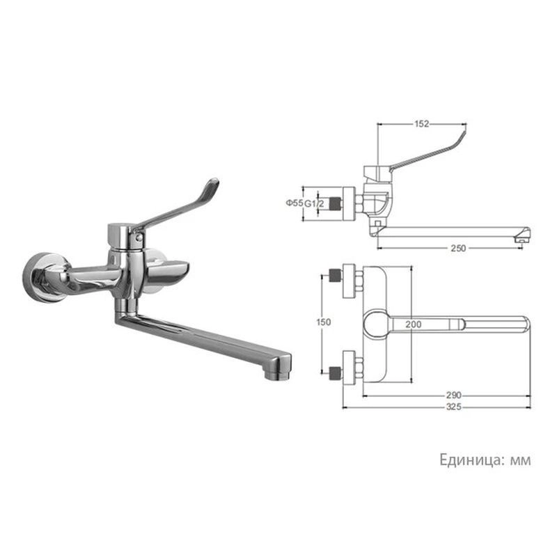 —Смеситель Gappo G4621 для кухни настенный хром