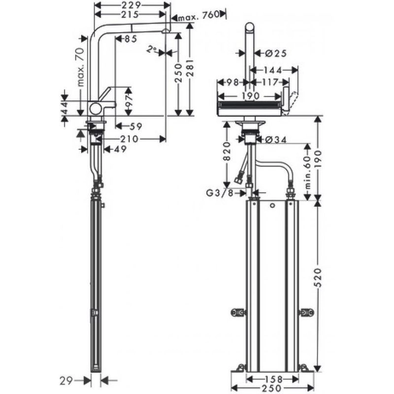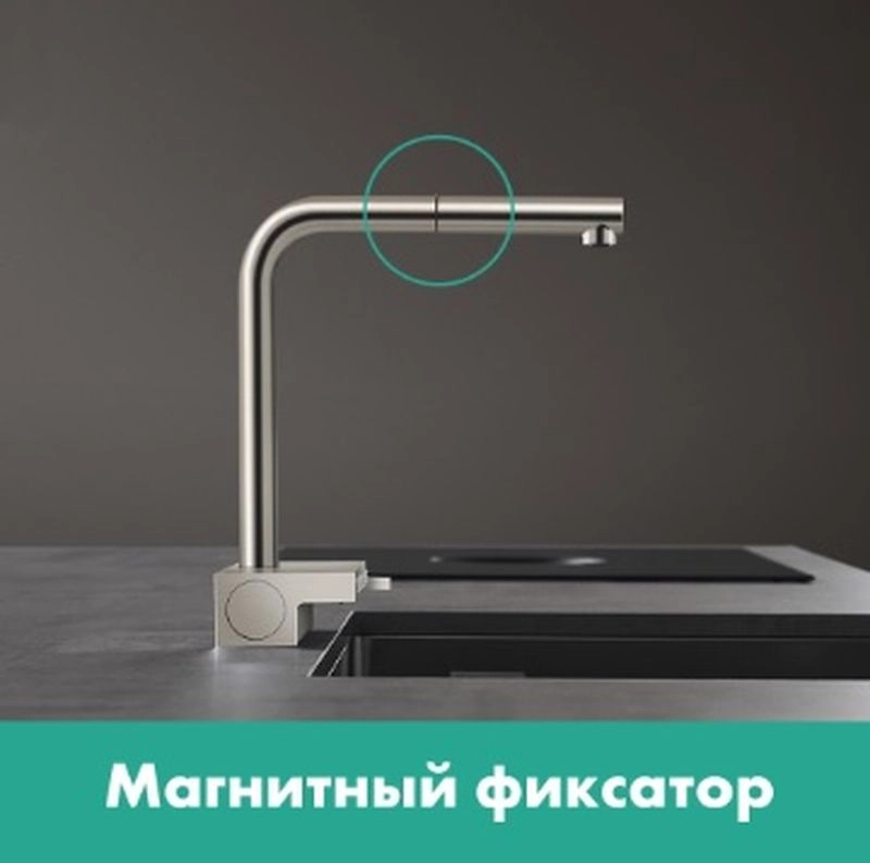 —Смеситель Hansgrohe 73830800 Aquno Select для кухни сталь 250 мм, 2 реж., выдвижной Г излив, sBox