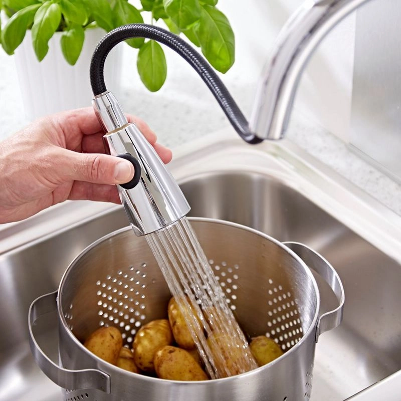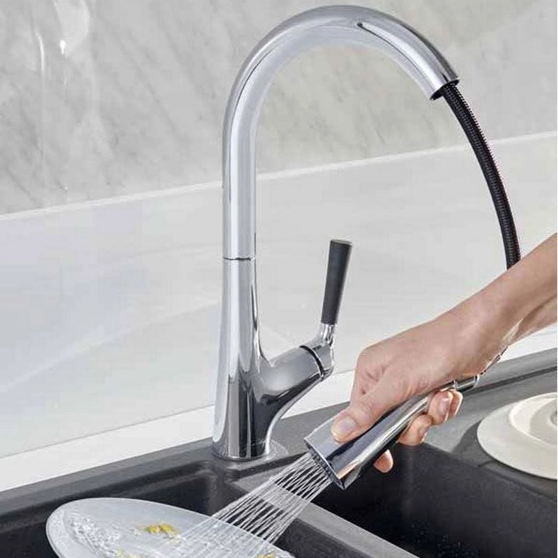 Смеситель для кухни с вытяжным изливом.