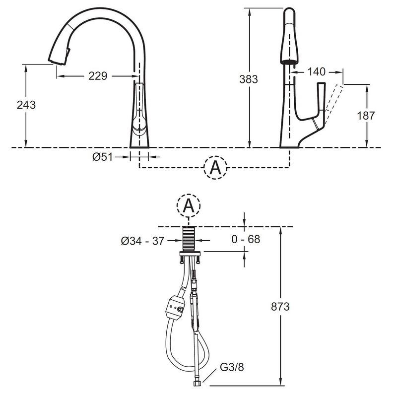 ВЫСОТА ПОД ИЗЛИВОМ: 383 мм