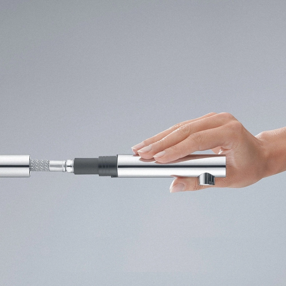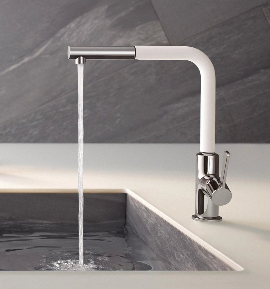 —Смеситель Kludi L-Ine 408519375 для кухни, с выдвижным изливом, цвет хром-белый матовый