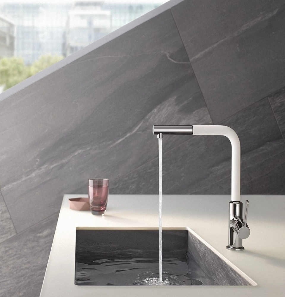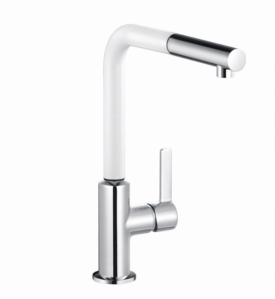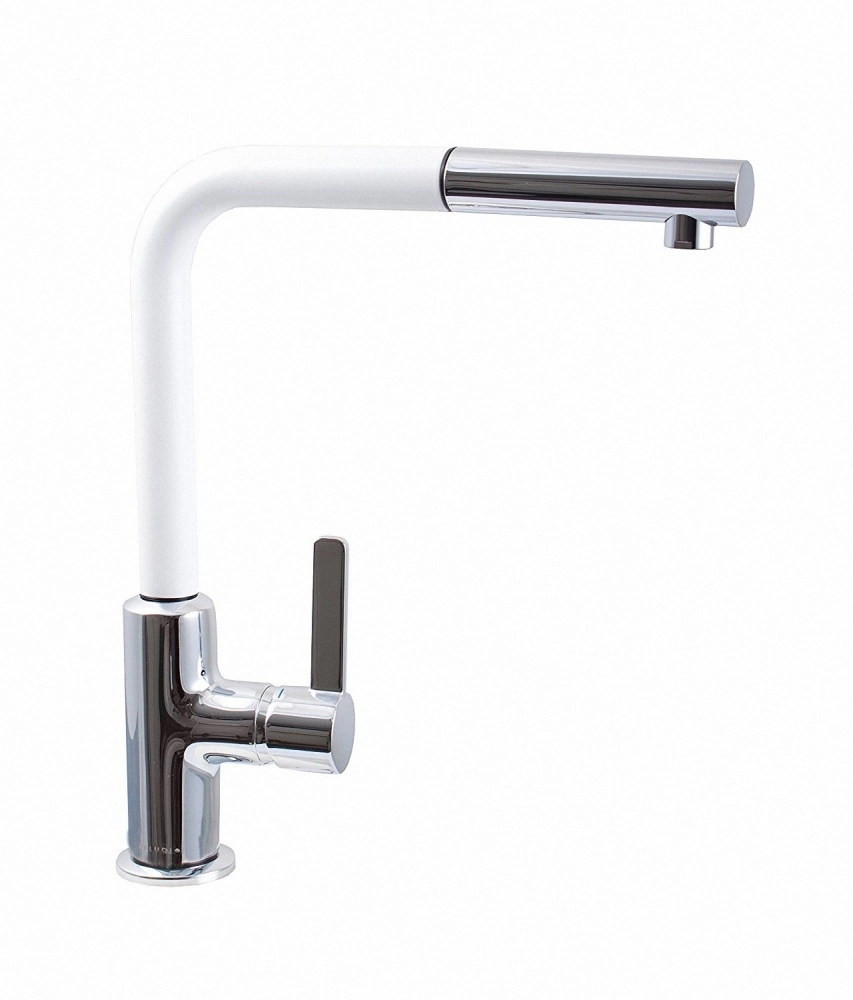 Смеситель Kludi L-Ine 408519375 для кухни, с выдвижным изливом, цвет хром-белый матовый