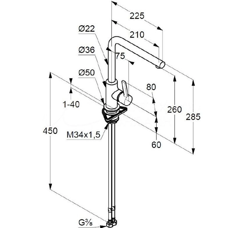 кухонный однорычажный смеситель DN 15