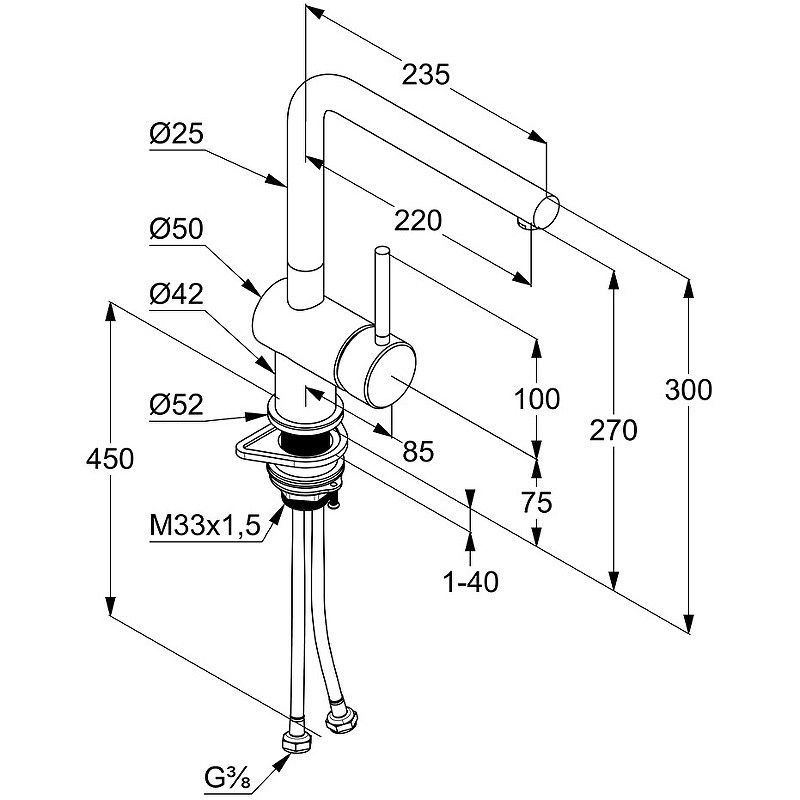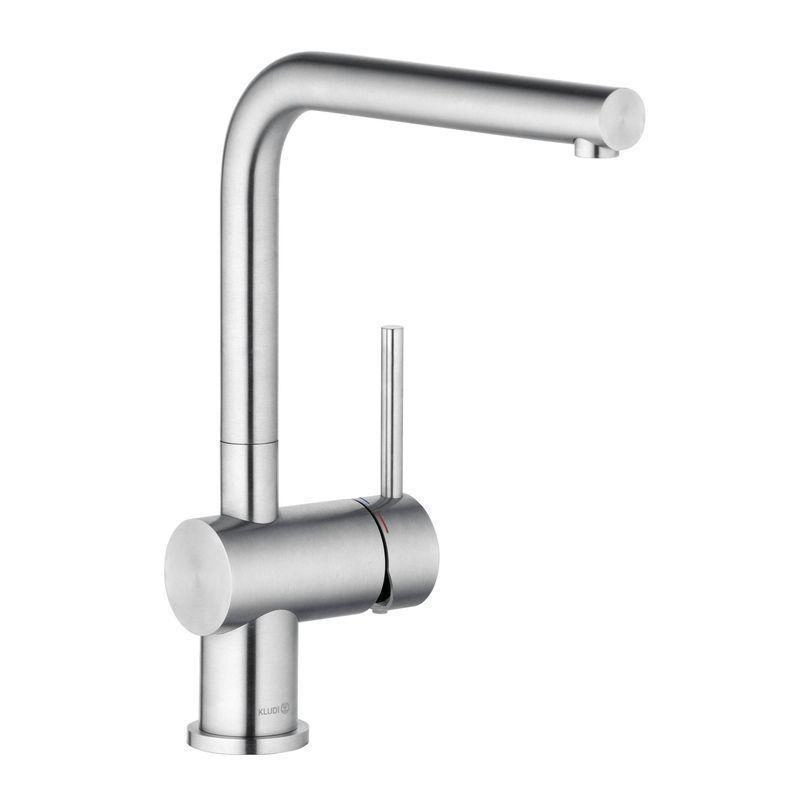 KLUDI L STEEL однорычажный смеситель для кухни DN 15 литой рычаг из нержавеющей стали монтаж на одно отверстие аэратор М 18 х 1 расход воды 9 л/мин при давлении 3 бара керамический картридж поворотный излив (360°) гибкая подводка G 3/8 система быстрого монтажа