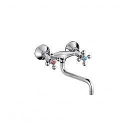 Смеситель для мойки двуручный настенный c поворотным трубчатым изливом. Хром.