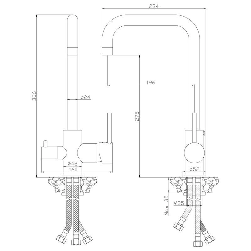 Смеситель Rossinka Z35-29 для кухни с подключением к фильтру с питьевой водой