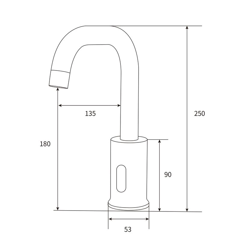 Изготовлен из латуни. В комлекте гибкая подводка 1/2. Источник питания от сети, от батареи . Вращающийся изливВысота излива, см 18