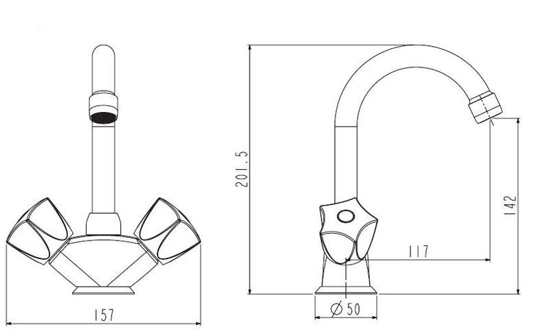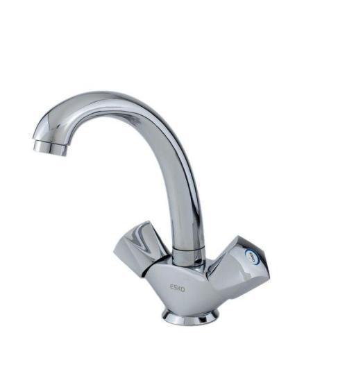 Корпус: латунь кат.A Ручки: металл, с защитой от нагревания Излив: поворотный, нерж.сталь Кран-буксы: универсальные ESKO, ход 180 градусов Комплектация: пьедесталметалл, крепление две шпильки, гибкая подводка 45см