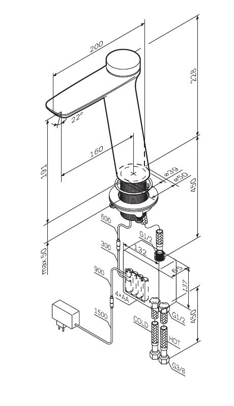 Идеальная геометрия, разработанная по стандарту SA (Smart Angle) – математические выверенное соотношение высоты смесителя, длины излива и наклона корпуса для удобного использования на умывальнике любого размера;