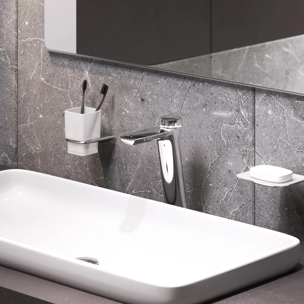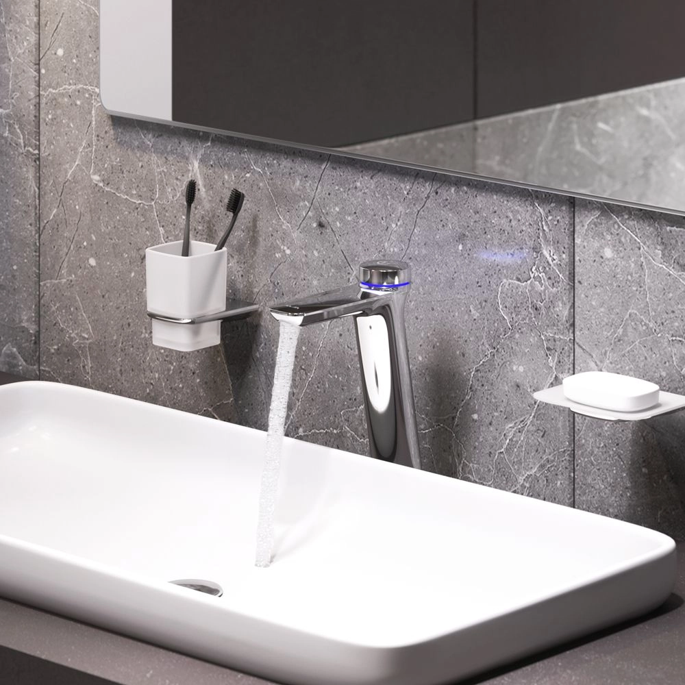 Интуитивная понятная система управления TouchReel для включения/выключения смесителя одним нажатием; Максимально простое управление температурой воды для тех, кто не хочет ничего настраивать; Идеальная геометрия, разработанная по стандарту SA (Smart Angle) – математические выверенное соотношение высоты смесителя, длины излива и наклона корпуса для удобного использования на умывальнике любого размера.