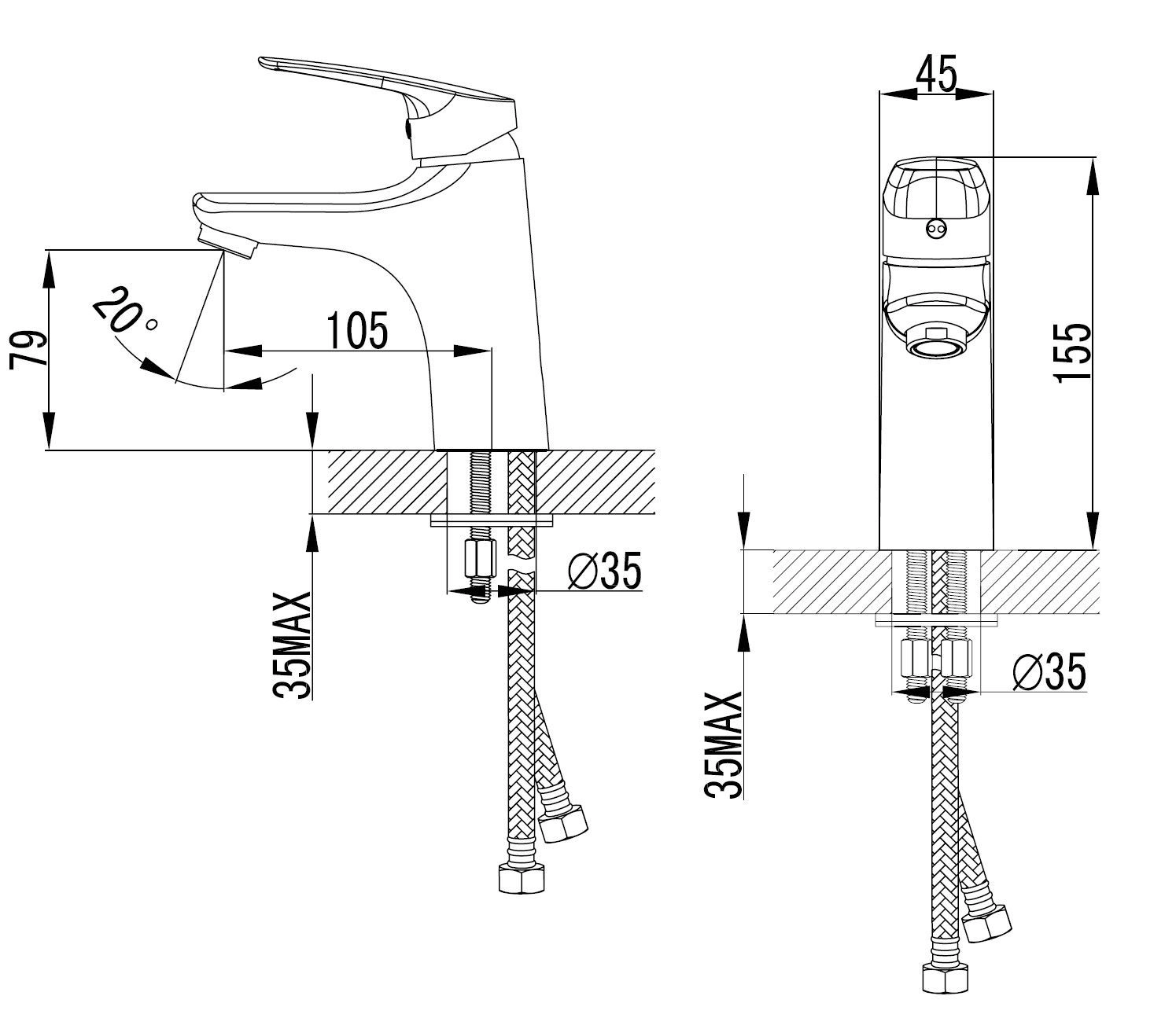 Смеситель для раковины AZARIO EVORA хром (AZ-WKE168043C)