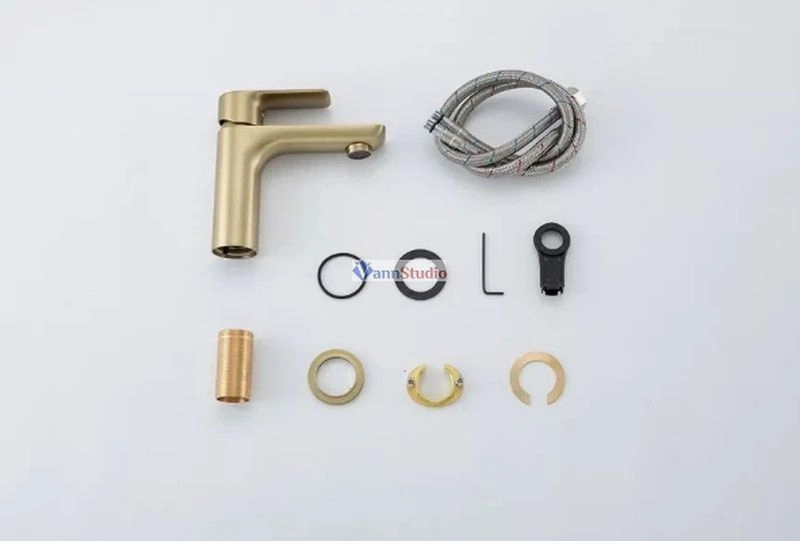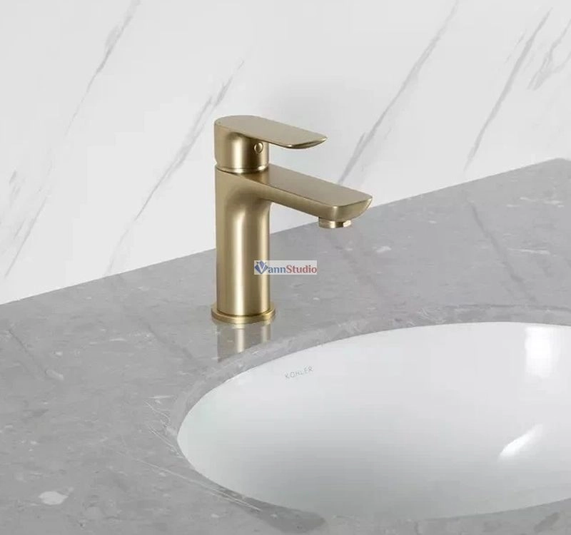 Смеситель для раковины Gappo G1048-32 выполнен в золотистом цвете с покрытием PVD, что придает ему стильный и современный вид.
