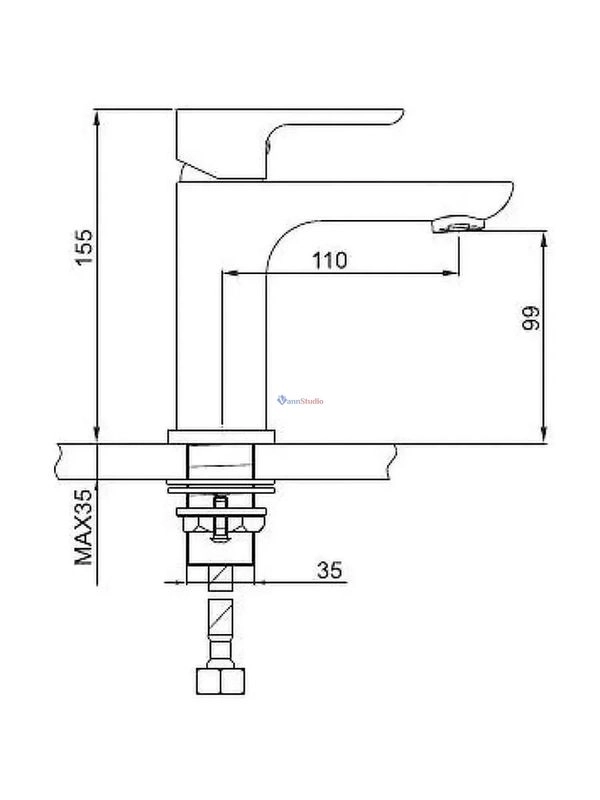 Монтаж смесителя осуществляется на горизонтальную поверхность, для чего предусмотрено одно монтажное отверстие диаметром 35 мм. В комплекте с смесителем идет монтажный комплект и гибкая подводка размером 1/2".