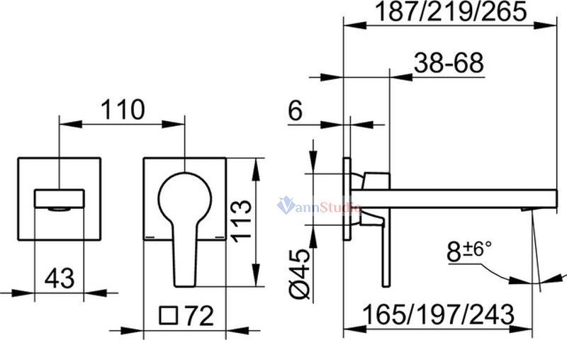 Встраиваемый, DN 15, керамический картридж с ограничителем температуры, аэратор SLIM SSR M 24x1, угол наклона струи регулируется, поток воды ограничен 7,6 л/мин. Подходит для внутренней части арт. 59916 000070