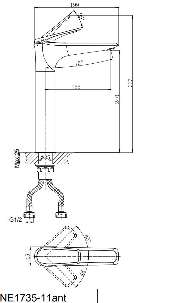 • Картридж с керамическими пластинами D-35 • Пластиковый аэратор с нержавеющим корпусом • Универсальная присоединительная группа для установки на горизонтальную поверхность • Гибкая подводка с латунными гайками 40 см -2шт. • Металлическая ручка