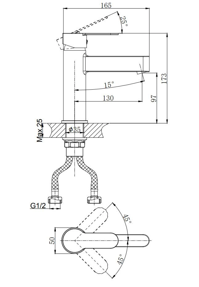 • Картридж с керамическими пластинами D-35 • Пластиковый аэратор с нержавеющим корпусом • Универсальная присоединительная группа для установки на горизонтальную поверхность • Гибкая подводка с латунными гайками 40 см -2шт. • Металлическая ручка