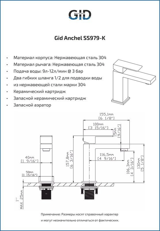 —Смеситель Gid Anchel SS979-CH-K для раковины Хром