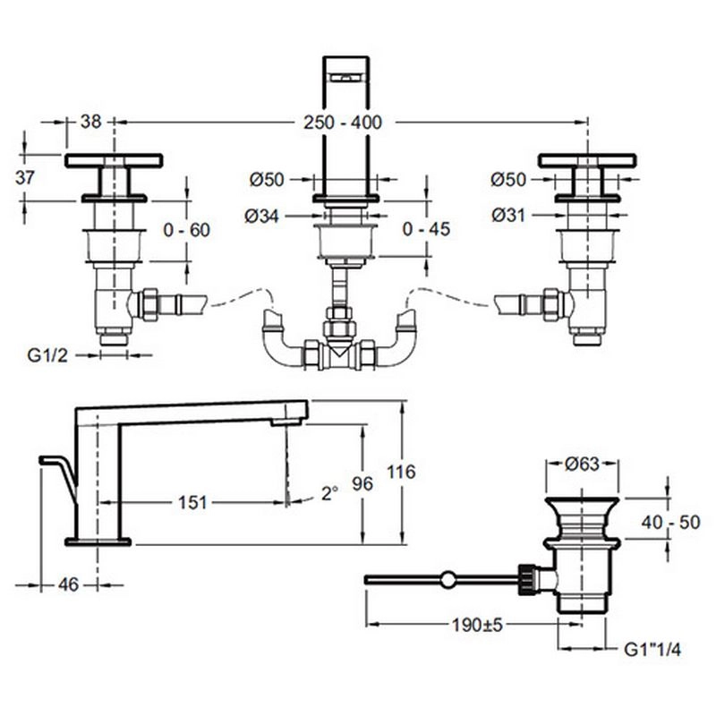 КОЛЛЕКЦИЯ :COMPOSED ВЕС :4.5 кг УСТАНОВКА : 3 отверстия РАСХОД : Максимум 5л/мин ВЫСОТА ПОД ИЗЛИВОМ: 116 мм МЕХАНИЗМ: Кран-буксы с керамическим диском МЕЖОСЕВОЕ РАССТОЯНИЕ: 250 - 400 mm ДЛИНА ИЗЛИВА: 151 мм ГАРАНТИЯ НА ОТДЕЛКУ: : 10 лет на покрытие "Хром" и 25 лет на покрытие "Титан" Аэратор с антиизвестковым покрытием «Ручки-крестовины»