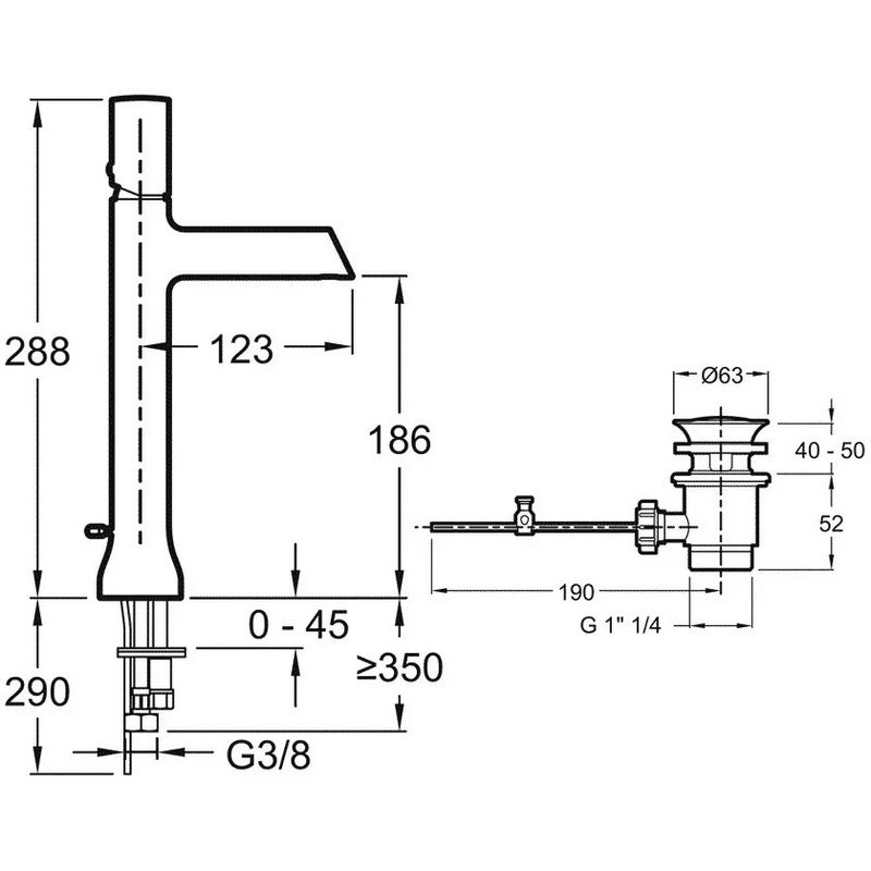ВЫСОТА ПОД ИЗЛИВОМ: 186 мм