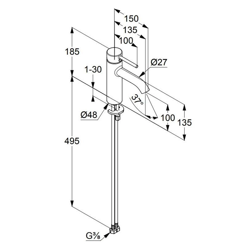 —Смеситель KLUDI BOZZ 382820576 для раковины без донного клапана 100 хром