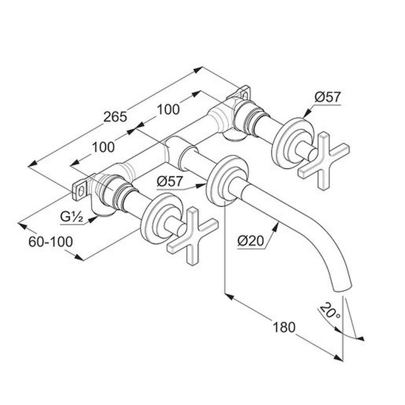KLUDI NOVA FONTE Classic настенный смеситель для умывальника DN 15 для скрытого монтажа крестообразные рукоятки расход воды 5,6 л/мин при давлении 3 бара ламинарный аэратор Eco PCA M 18,5 x 1 керамические кран-буксы 90° Soft-Start комплект: внешние элементы и внутренняя часть длина излива 180 мм