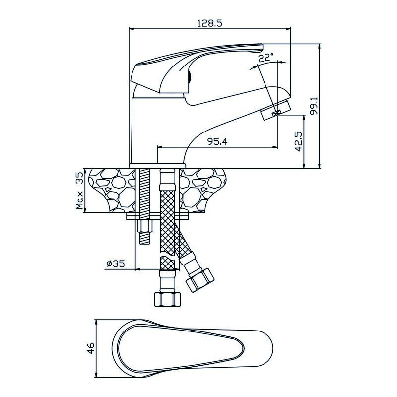 Смеситель комплектуется усиленным крепежом из нержавеющей стали с ребром жесткости.