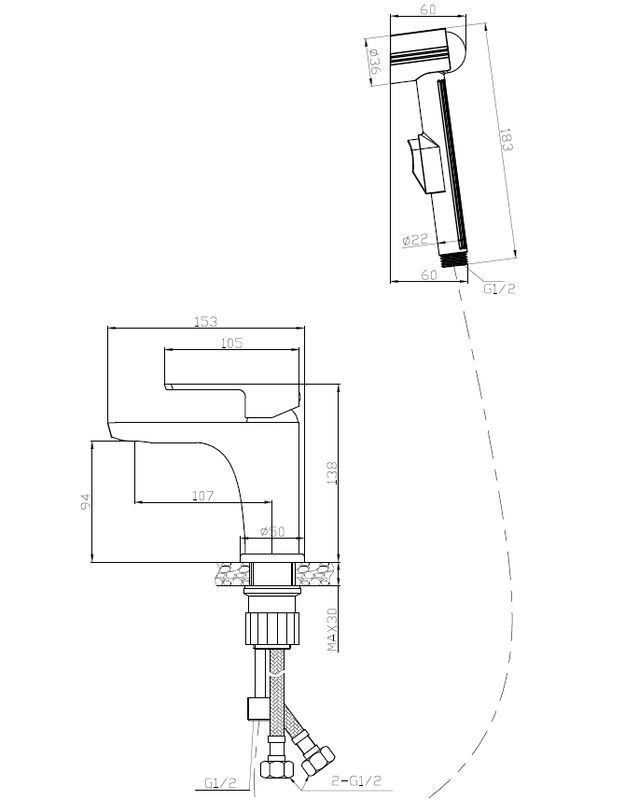 Корпус: латунь кат.A Картридж: универсальный ESKO, 35мм Комплектация: крепление 2 шпильки, гибкая подводка 40смподключение М8 - 3/8, евро стандарт, шланг душевойметалл - 120см. , лейка гиг. 1 режим, настенный держатель для лейки.