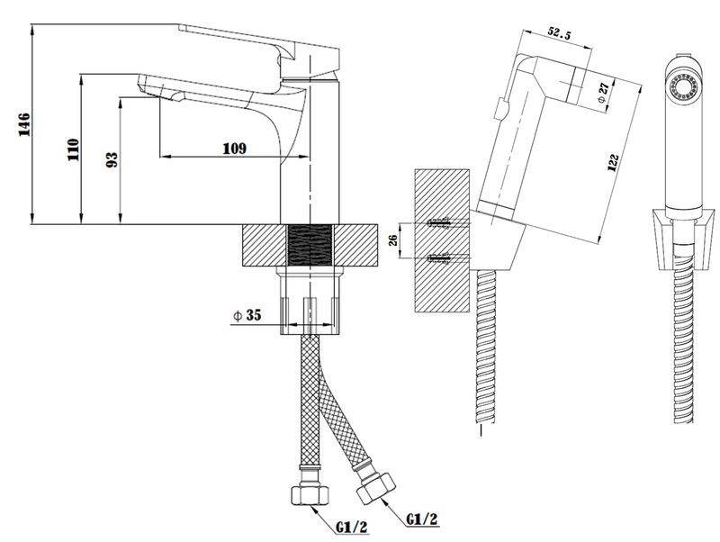 —Смеситель с гигиеническим душем ESKO SINGAPORE black SB 27H черный