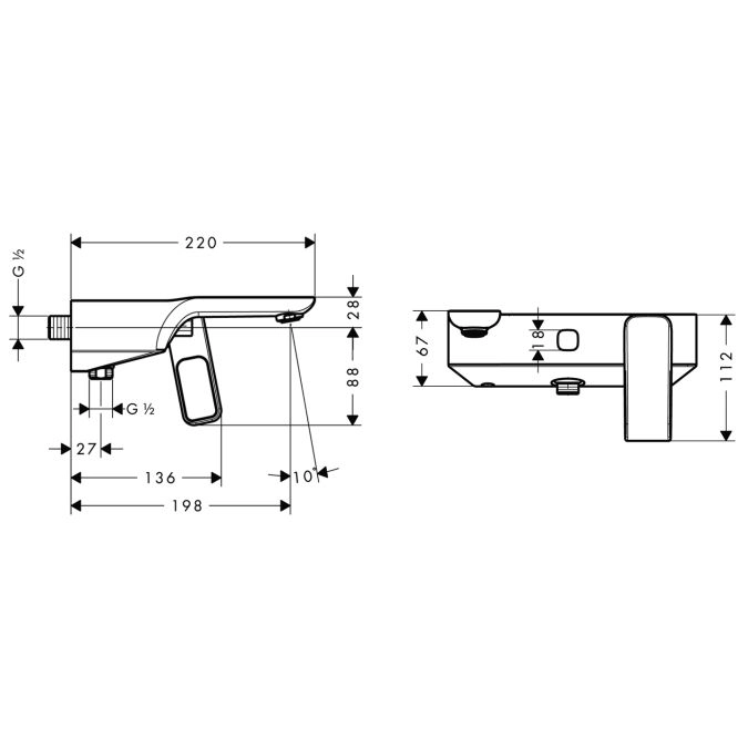 выступ 198 мм вид соединения: S-образные эксцентрики межосевое пос донным клапаномлючение: 150 мм ± 16 мм обычная струя расход воды: 22 л/мин керамический узел смешивания регулируемое ограничение температуры с переключателем вакуумного типа клапан обратного тока воды с шумопоглотителем подходит для проточных водонагревателей