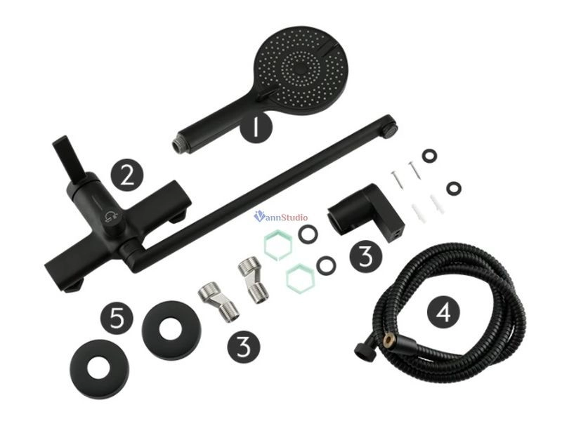 В комплекте шланг 150 см, душевай лейка, отражатели, эксцентрики 1/2x3/4, смеситель,крепление, инструкция, гарантийный талон.