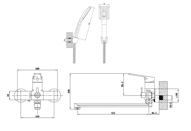 Корпус: латунь кат.A, покрытие черный матовый Излив: поворотный, 320мм Картридж: универсальный ESKO, 35мм Комплектация: эксцентрики, отражатели, шланг душевой в мет. оплетке - 150см., лейка душевая1 режим, настенный держатель для лейки