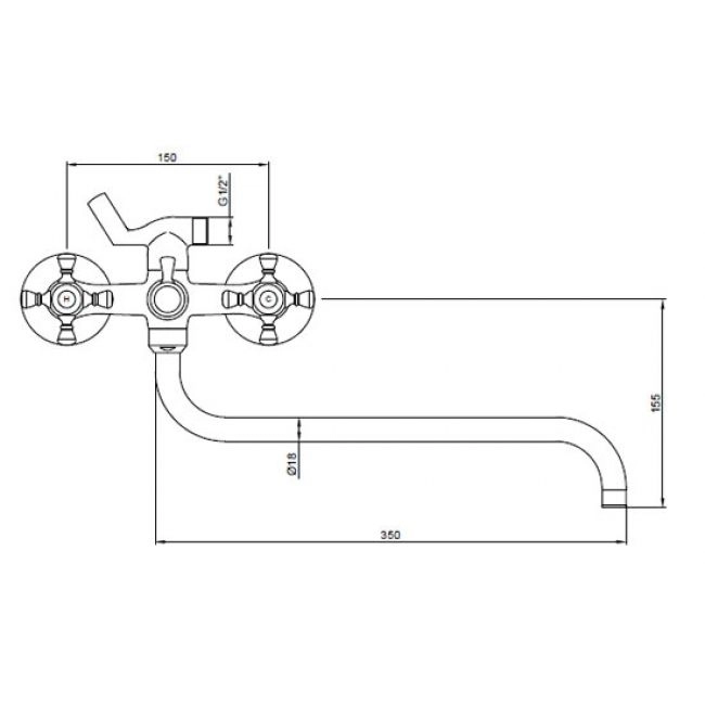 Смеситель KAISER Carlson Style для ванны крест керамика с картридж. перекл.