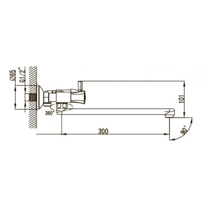 Смеситель KAISER Topaz ванна круг 2-х вентильный (кер/переключатель) пл/излив, с душем