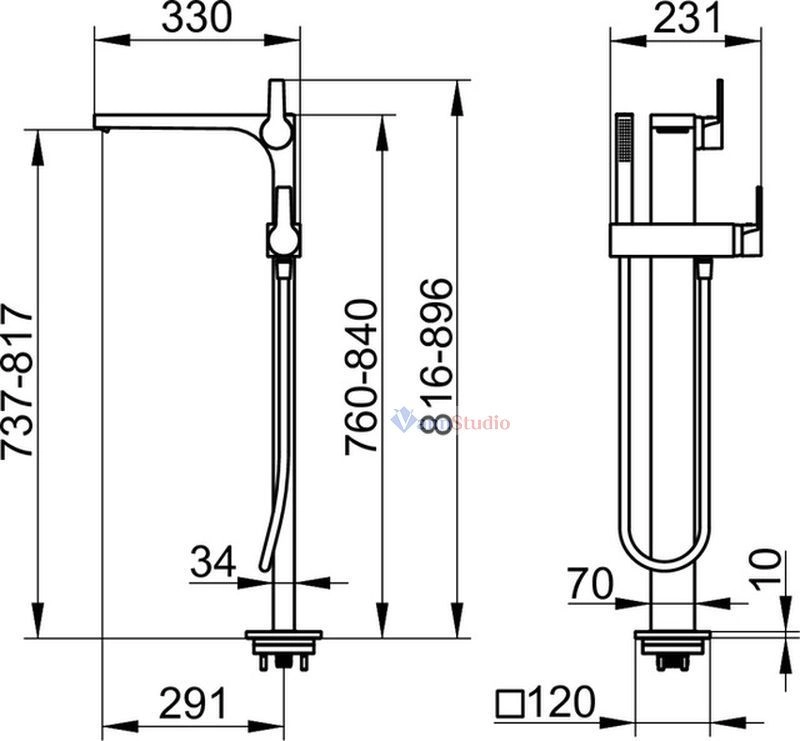 Для напольного монтажа к отдельно стоящим ваннам, керамических картридж с ограничителем температуры, аэратор, в комплекте с душевой стержневидной лейкой и душевым шлангом 1250 мм. Для монтажа необходимо: монтажный комплект для напольного крепления (№ артикула 51127010070)