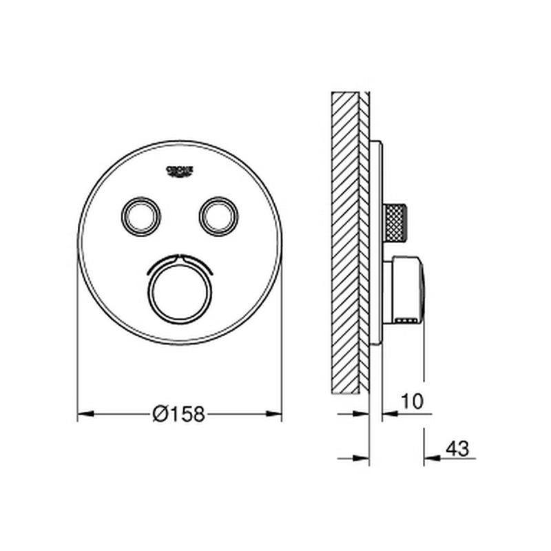 металлическая накладная панель с GROHE QuickFix (скрытые эксцентрики, уплотнение, скрытый монтаж), регулируемая на 6°.