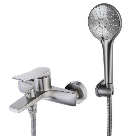 - Аксессуары в комплекте: душевой шланг 1,5 м, настенное поворотное крепление, 3-функциональная лейка ?110x243 мм