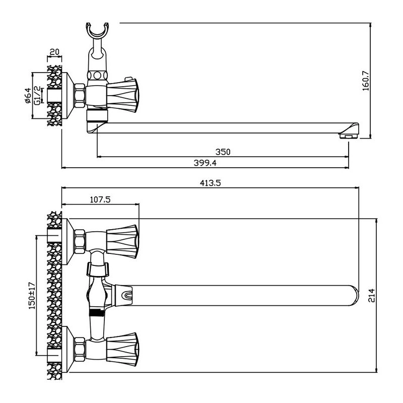 Держатель лейки на корпусе смесителя
