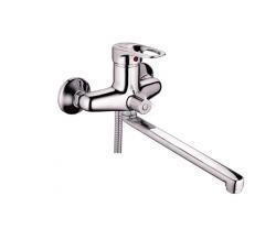 Смеситель универсальный с плоским прямым изливом и переключателем для душа. Хром.