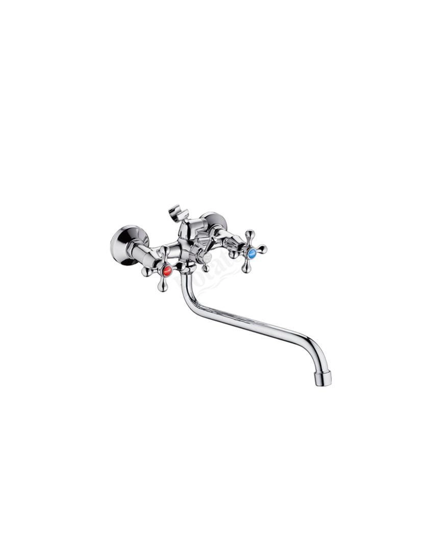 Смеситель для ванны с длинным изливом и шаровым переключателем для душа. Форма ручки указана на фото. Хром.