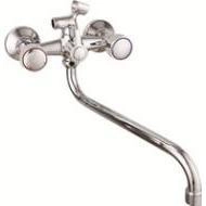 Смеситель для ванны с плоским длинным изливом и поворотным переключателем для душа. Хром.