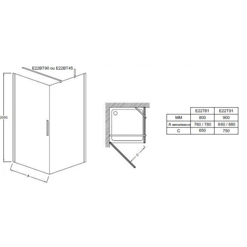 МИН./МАКС. ШИРИНА ДОСТУПА С ОГРАЖДЕНИЕМ И ФИКСИРОВАННОЙ ПАНЕЛЬЮ: 86,4 - 88,2 cm