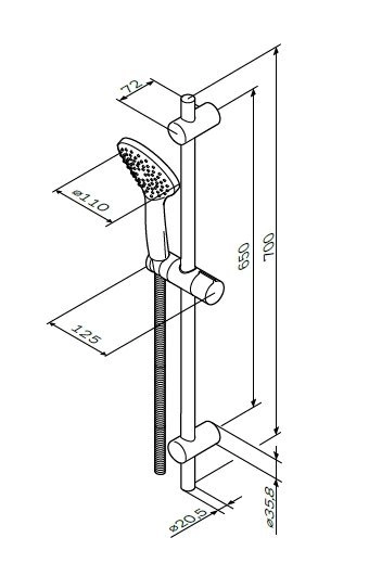 Ручной душ 1 функция d 110 мм, штанга 700, шланг 1 750 мм, хром