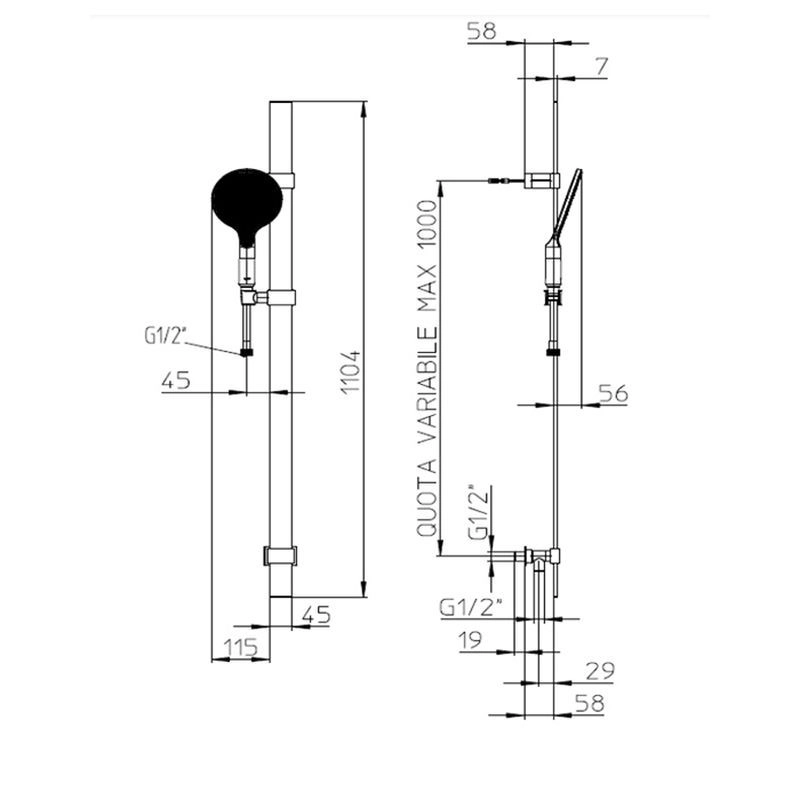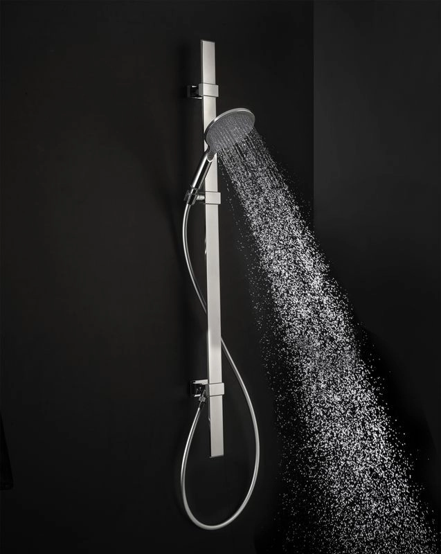 Инновация от Bossini Душевой гарнитур с подводом для воды, более эстетично без лишних деталей на стене. Комплект: душевая штанга FLAT из латуни 110 см.